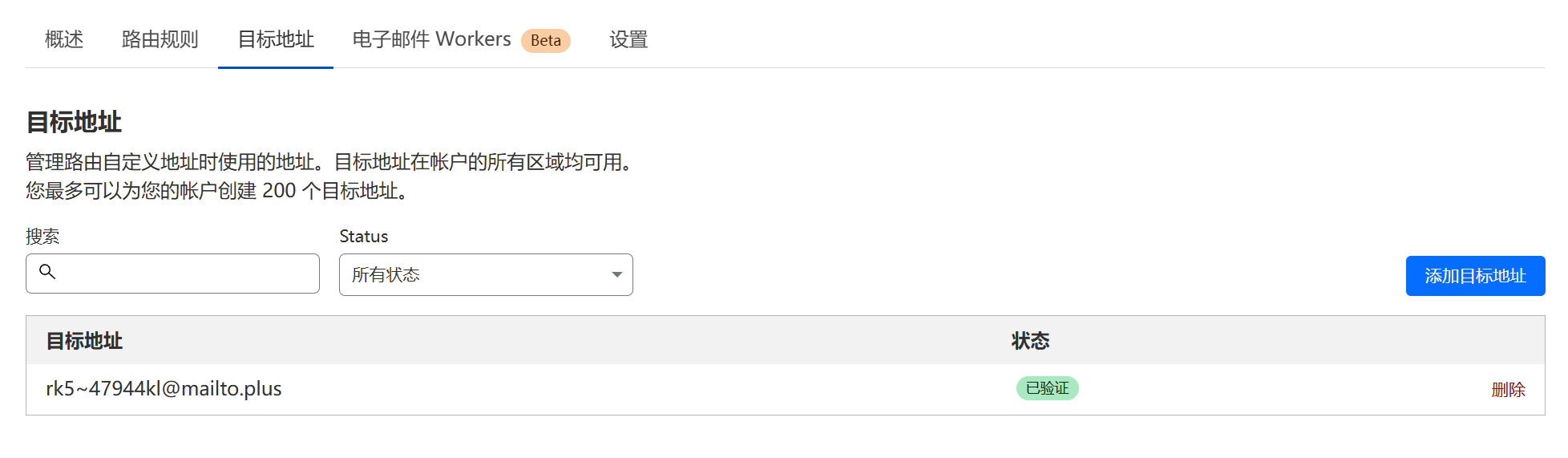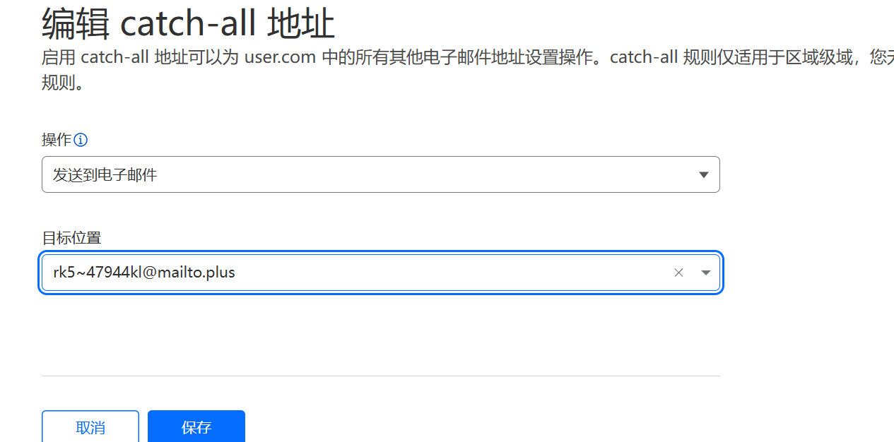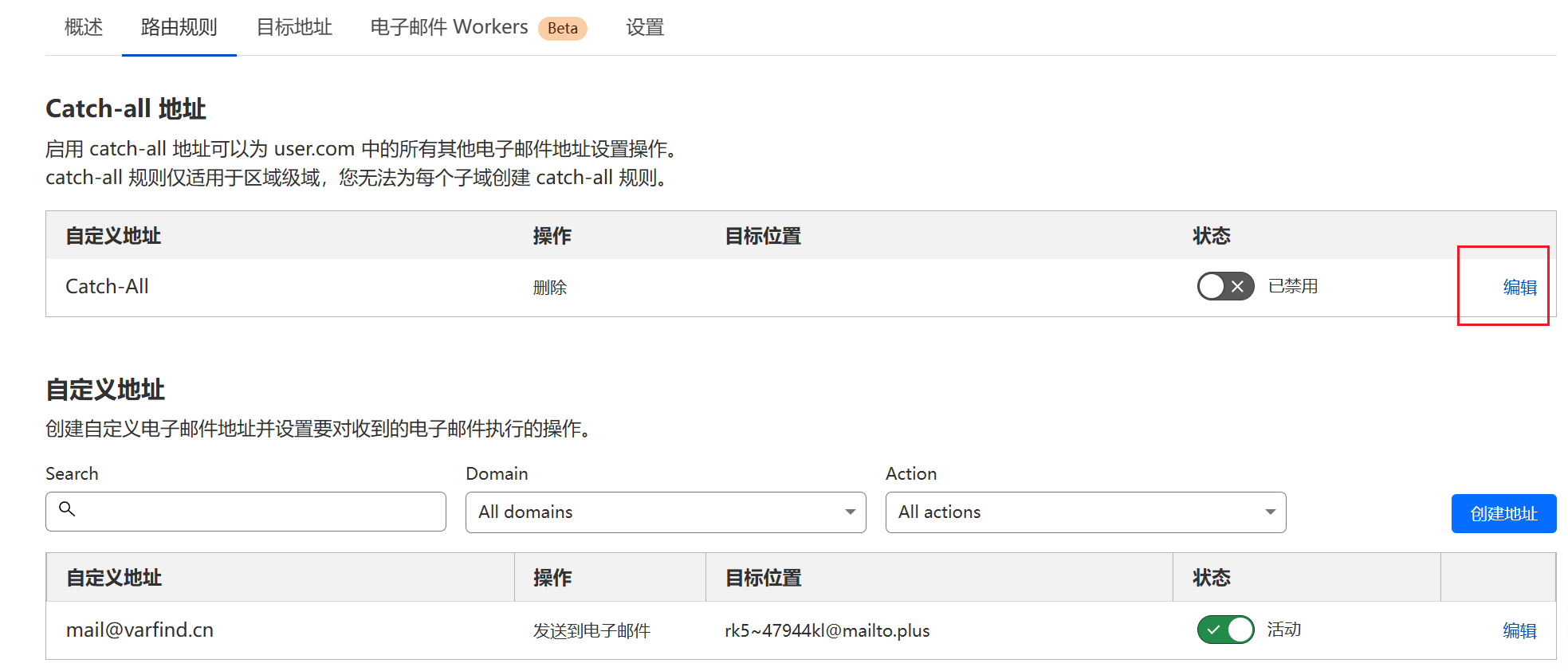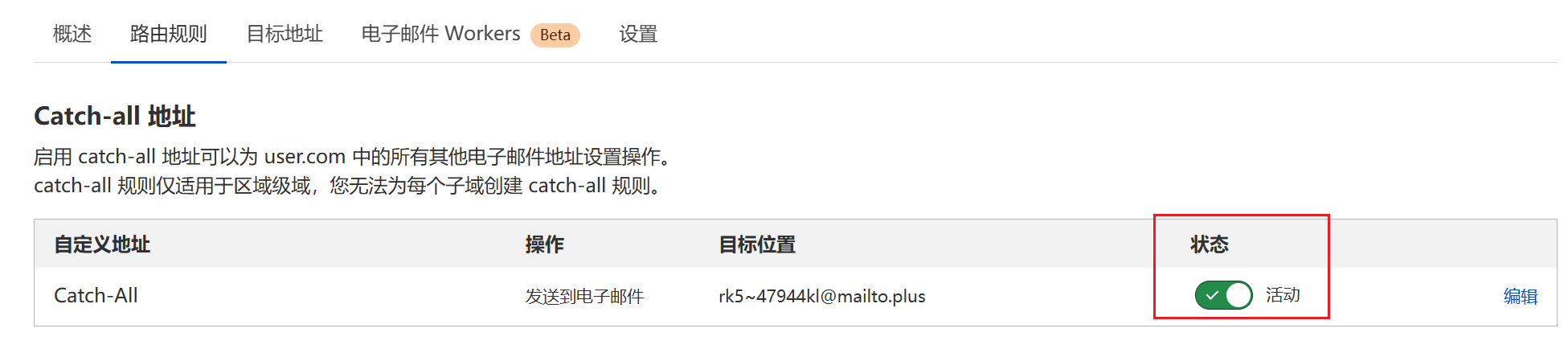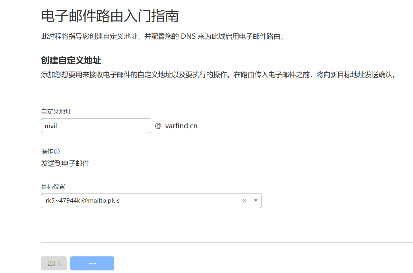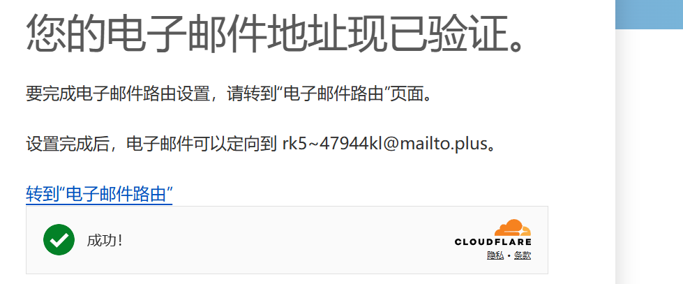 ## 用Cloudflare自建域名邮箱(不限数量) [参考b站视频](https://www.bilibili.com/video/BV1r8d1YLEUe/?vd_source=b44a756d791d3ca648d38a6cb88d8d9b) [Cloudflare主页](https://dash.cloudflare.com/) 添加站点  修改原来的DNS(我是阿里万网上申请的域名,在上面DNS管理直接修改了)   > 其实不用那么久的:(大概十分钟就可以了)  打开 [TempMail](https://tempmail.plus/zh/),如随机邮箱为 `uehav@mailto.plus`【已改为`Terrylvlh0608@mailto.plus`】   配置电子邮件路由(已改为`5l6~kddl6zkpa49muwn20bebkr@mailto.plus`)    此时,TempMail界面就有收到邮件,如:  打开邮件,验证一下该邮箱:  看到cloudflare界面提示已验证:  然后,点击继续,继续点击“添加记录并使用”   设置路由规则,点击编辑进去,并设置,最后保存。   并将状态设置为“活动”  看到“已启动”就表示完成所有设置了:   然后,如用QQ邮箱,发个邮件给`12b@varfind.cn`,12b是随机的名称,此时TempMail可以收到邮件。  下载GitHub项目:https://github.com/chengazhen/cursor-auto-free ,并下载对应的二进制文件,如Windows平台的`CursorPro-Windows.zip`:  - 使用 `.env.example` ,并修改为 `.env` 文件中的开头两个参数 `DOMAIN` 和 `TEMP_MAIL` 即可: ``` DOMAIN='varfind.cn' # 你的 Cloudflare 域名 TEMP_MAIL=uehav@mailto.plus # 设置为 null 启用 IMAP 模式 # 设置的PIN码 TEMP_MAIL_EPIN=xxxxxx # 使用的后缀 TEMP_MAIL_EXT=@mailto.plus # IMAP服务器配置 IMAP_SERVER=imap.xxxxx.com # 例如:QQ邮箱,Gmail IMAP_PORT=993 # 993 IMAP_USER=xxxx@xxxx.com # 接收邮箱地址 IMAP_PASS=xxxxxxxxxxxxx # 邮箱授权码 # IMAP_DIR= # [可选] 默认为收件箱(inbox) IMAP_PROTOCOL=IMAP # 指定使用 IMAP 协议 BROWSER_USER_AGENT=Mozilla/5.0 (Windows NT 10.0; Win64; x64) AppleWebKit/537.36 (KHTML, like Gecko) Chrome/130.0.6723.92 Safari/537.36 # 无头模式 默认开启 # BROWSER_HEADLESS='True' # 使用其他浏览器(如Edge) # BROWSER_PATH='C:\Program Files (x86)\Microsoft\Edge\Application\msedge.exe' ``` - 拷贝 `.env` 文件和 `names-dataset.txt` 文件到二进制文件`CursorPro.exe`所在目录下。  > 注意:CursorPro.exe要以管理员权限运行!      上面获取到了账号密码,直接进行Cursor登录,即可。