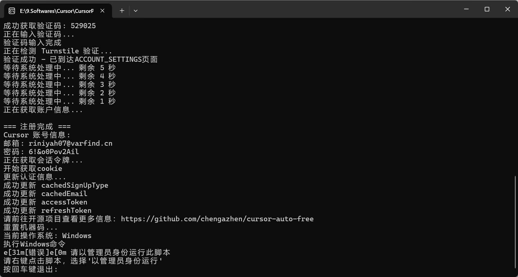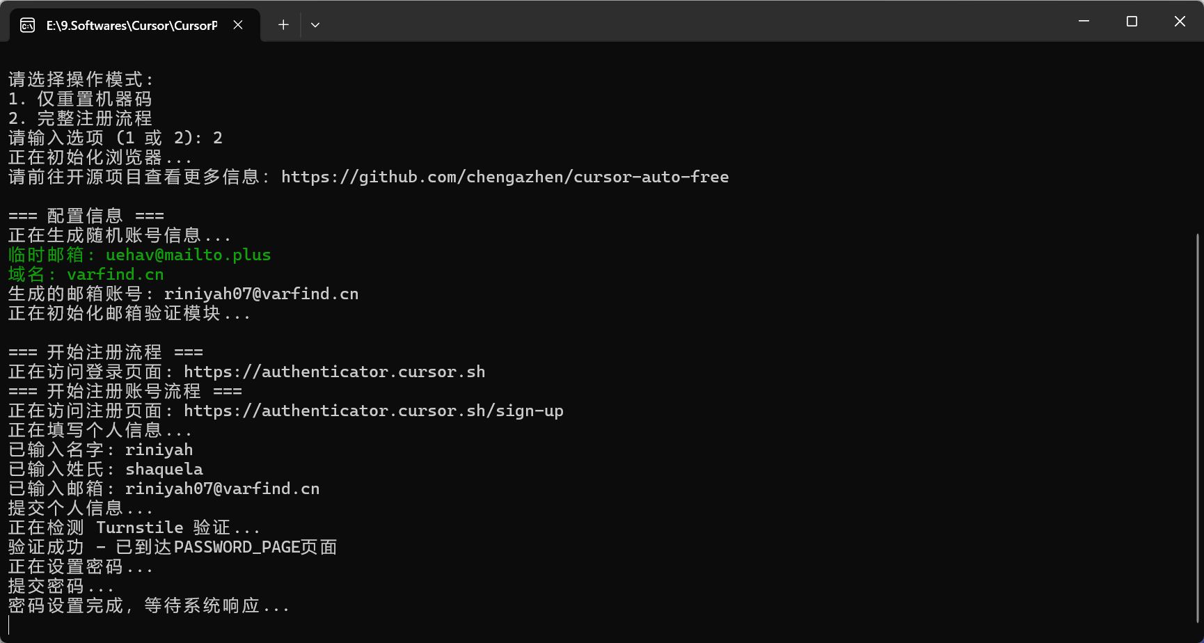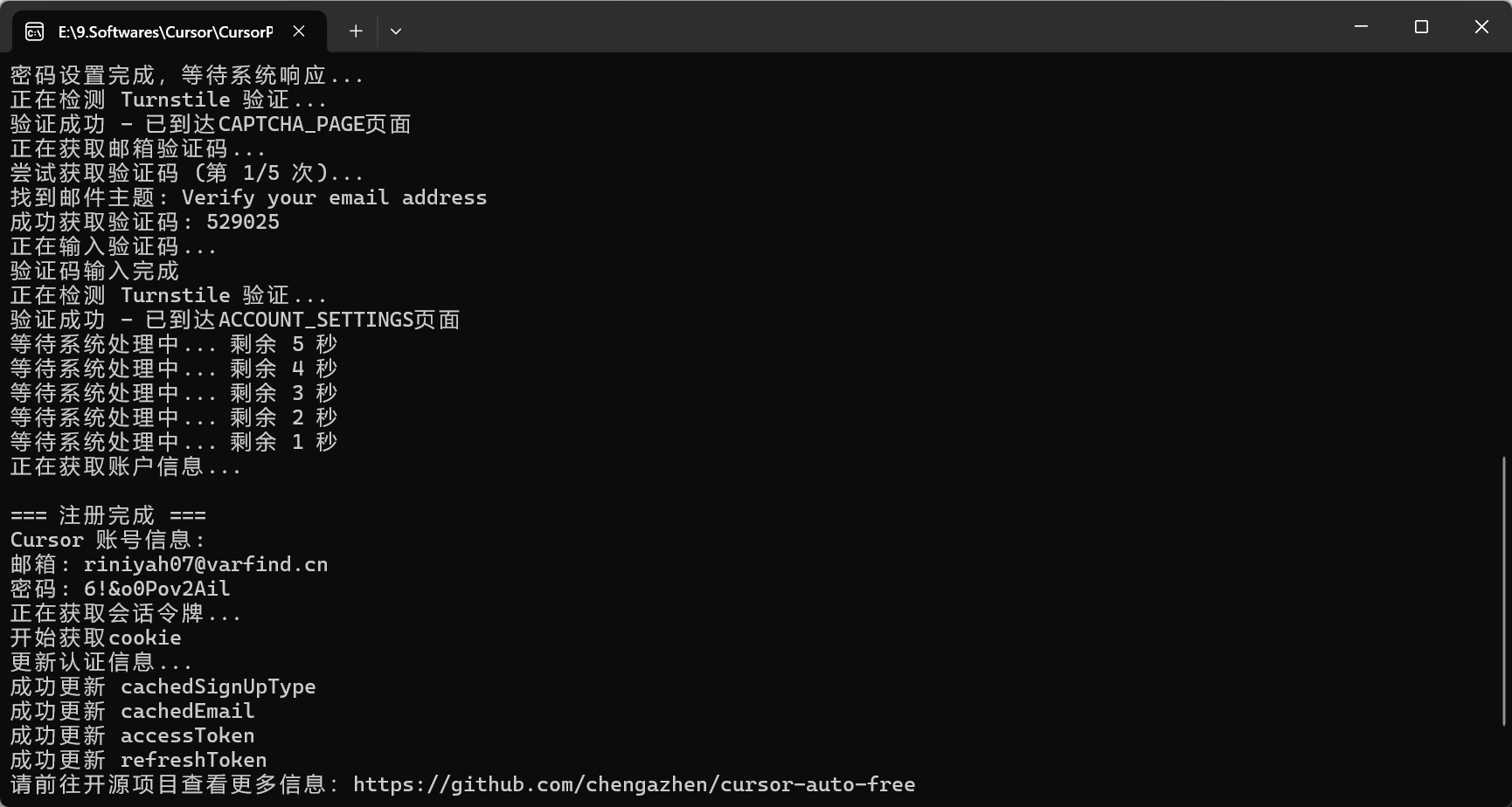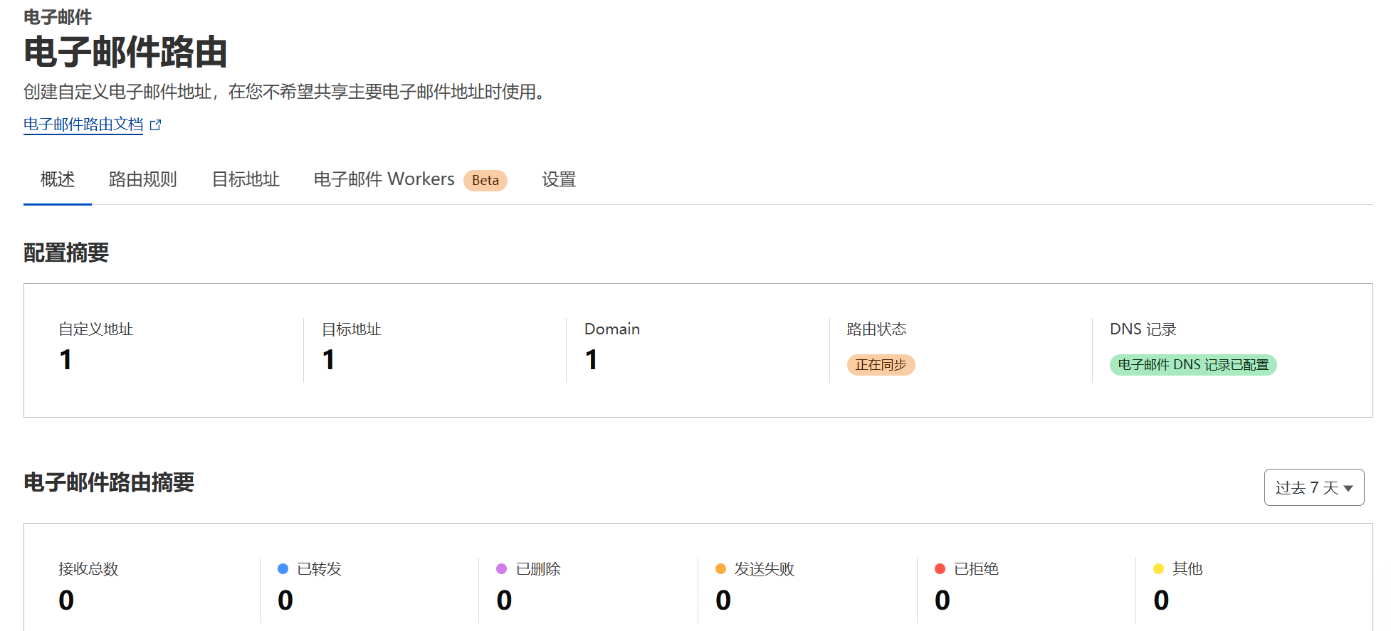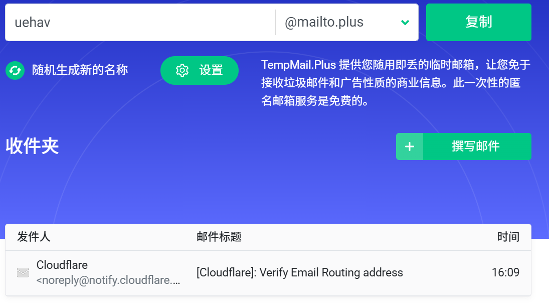 ## 用Cloudflare自建域名邮箱(不限数量) [参考b站视频](https://www.bilibili.com/video/BV1r8d1YLEUe/?vd_source=b44a756d791d3ca648d38a6cb88d8d9b) [Cloudflare主页](https://dash.cloudflare.com/) 添加站点  修改原来的DNS(我是阿里万网上申请的域名,在上面DNS管理直接修改了)   > 其实不用那么久的:(大概十分钟就可以了)  打开 [TempMail](https://tempmail.plus/zh/),如随机邮箱为 `uehav@mailto.plus`【已改为`Terrylvlh0608@mailto.plus`】   配置电子邮件路由(已改为`5l6~kddl6zkpa49muwn20bebkr@mailto.plus`)    此时,TempMail界面就有收到邮件,如:  打开邮件,验证一下该邮箱:  看到cloudflare界面提示已验证:  然后,点击继续,继续点击“添加记录并使用”   设置路由规则,点击编辑进去,并设置,最后保存。   并将状态设置为“活动”  看到“已启动”就表示完成所有设置了:   然后,如用QQ邮箱,发个邮件给`12b@varfind.cn`,12b是随机的名称,此时TempMail可以收到邮件。  下载GitHub项目:https://github.com/chengazhen/cursor-auto-free ,并下载对应的二进制文件,如Windows平台的`CursorPro-Windows.zip`:  - 使用 `.env.example` ,并修改为 `.env` 文件中的开头两个参数 `DOMAIN` 和 `TEMP_MAIL` 即可: ``` DOMAIN='varfind.cn' # 你的 Cloudflare 域名 TEMP_MAIL=uehav@mailto.plus # 设置为 null 启用 IMAP 模式 # 设置的PIN码 TEMP_MAIL_EPIN=xxxxxx # 使用的后缀 TEMP_MAIL_EXT=@mailto.plus # IMAP服务器配置 IMAP_SERVER=imap.xxxxx.com # 例如:QQ邮箱,Gmail IMAP_PORT=993 # 993 IMAP_USER=xxxx@xxxx.com # 接收邮箱地址 IMAP_PASS=xxxxxxxxxxxxx # 邮箱授权码 # IMAP_DIR= # [可选] 默认为收件箱(inbox) IMAP_PROTOCOL=IMAP # 指定使用 IMAP 协议 BROWSER_USER_AGENT=Mozilla/5.0 (Windows NT 10.0; Win64; x64) AppleWebKit/537.36 (KHTML, like Gecko) Chrome/130.0.6723.92 Safari/537.36 # 无头模式 默认开启 # BROWSER_HEADLESS='True' # 使用其他浏览器(如Edge) # BROWSER_PATH='C:\Program Files (x86)\Microsoft\Edge\Application\msedge.exe' ``` - 拷贝 `.env` 文件和 `names-dataset.txt` 文件到二进制文件`CursorPro.exe`所在目录下。  > 注意:CursorPro.exe要以管理员权限运行!      上面获取到了账号密码,直接进行Cursor登录,即可。