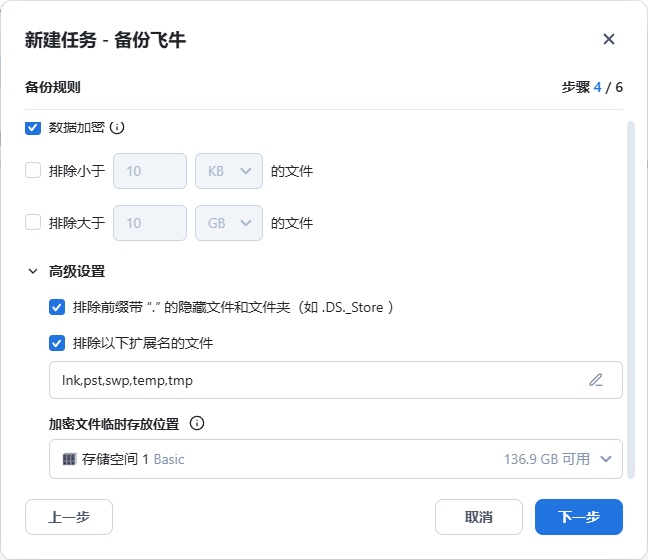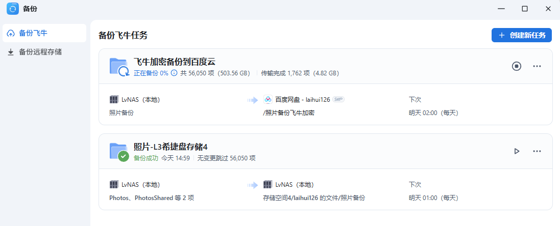 ## 飞牛备份   数据加密需要牢牢记住密码,当需要从备份数据恢复时,是需要勾选**数据解密**的,此时就是当时加密的密码。 ## 飞牛同步
