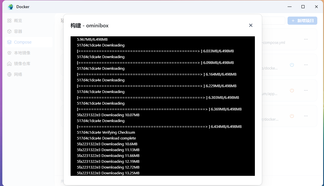 ## 安装 Docker中,打开Compose,新增项目,然后命名+创建一个ominibox目录(我存在 `/vol3/1000/ominibox` 中) 建议使用 Docker compose 方式安装,docker-compose.yml 文件内容为: ``` services: omnibox: image: lampon/omnibox:latest # 使用最新的 Omnibox 镜像 container_name: omnibox # 容器名称为 omnibox restart: always # 容器自动重启策略设置为总是重启 environment: - TZ=Asia/Shanghai # 设置时区为上海 ports: - "7023:7023" # 映射本地端口 7023 到容器的 7023 端口 volumes: - ./omnibox/data:/app/data # 将本地的 ./omnibox/data 目录挂载到容器的 /app/data 目录 networks: - media-net # 使用内部网络 media-net 进行通信 networks: media-net: driver: bridge # 使用默认的桥接网络驱动 ``` 勾选创建后立即启动,再点击确定,等待安装即可:  出现 `Exited:0` 就是完成了  ## 配置 打开:http://192.168.1.4:7023/login 即可,首次登陆需要设置管理员密码 lai09 **配置** 第一次启动后需要配置对应的影视站资源、网盘资源、直播资源等,首页右上方「我的」->「管理」进入管理界面,按照左侧菜单栏选择对应资源添加或者导入即可。下面是一些参考: ``` # 1添加的影视资源 360资源 https://360zy.com/api.php/provide/vod 卧龙资源 https://wolongzyw.com/api.php/provide/vod 极速资源 https://jszyapi.com/api.php/provide/vod # 2添加盘搜应用地址 https://so.252035.xyz/ # 3网盘授权(授权自己的网盘) # 4直播资源->电视直播资源(M3U类型) IPTV https://raw.githubusercontent.com/Guovin/iptv-api/gd/output/ipv4/result.m3u 冰茶TV https://188766.xyz/itv # PS:想要更多资源的,这里提供一些大佬的资源参考: https://github.com/Guovin/iptv-api ``` 资源佬:https://github.com/Guovin/iptv-api